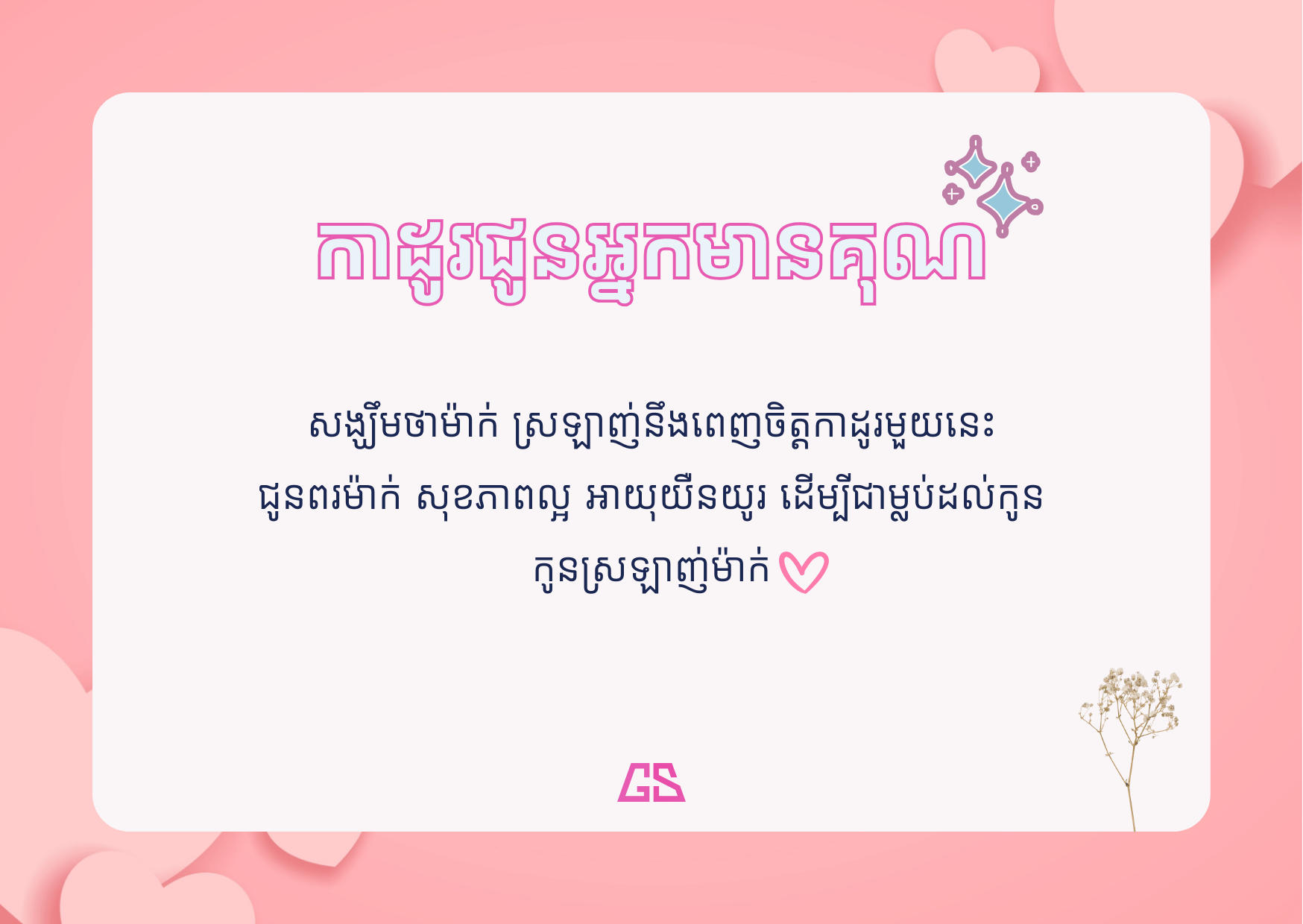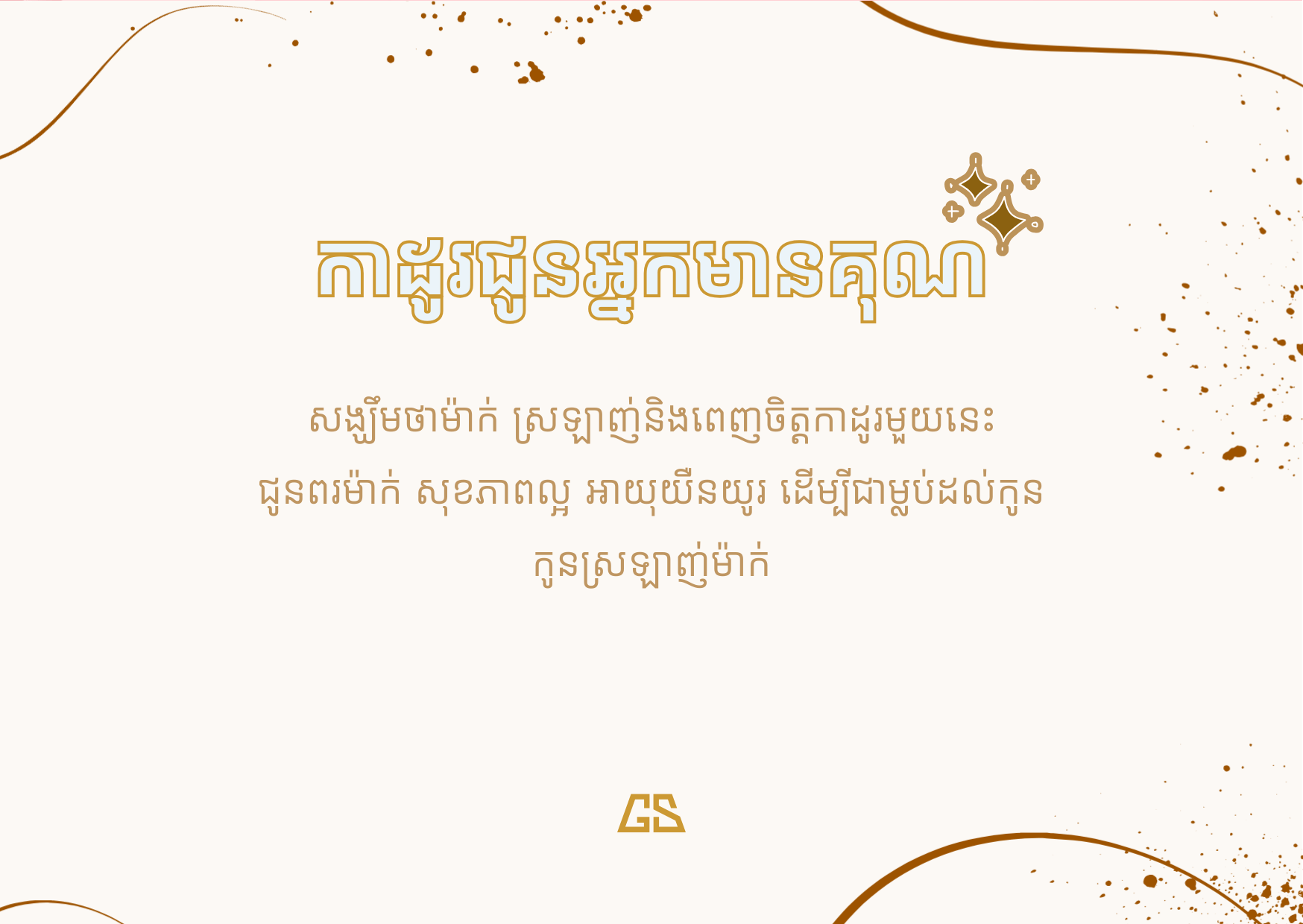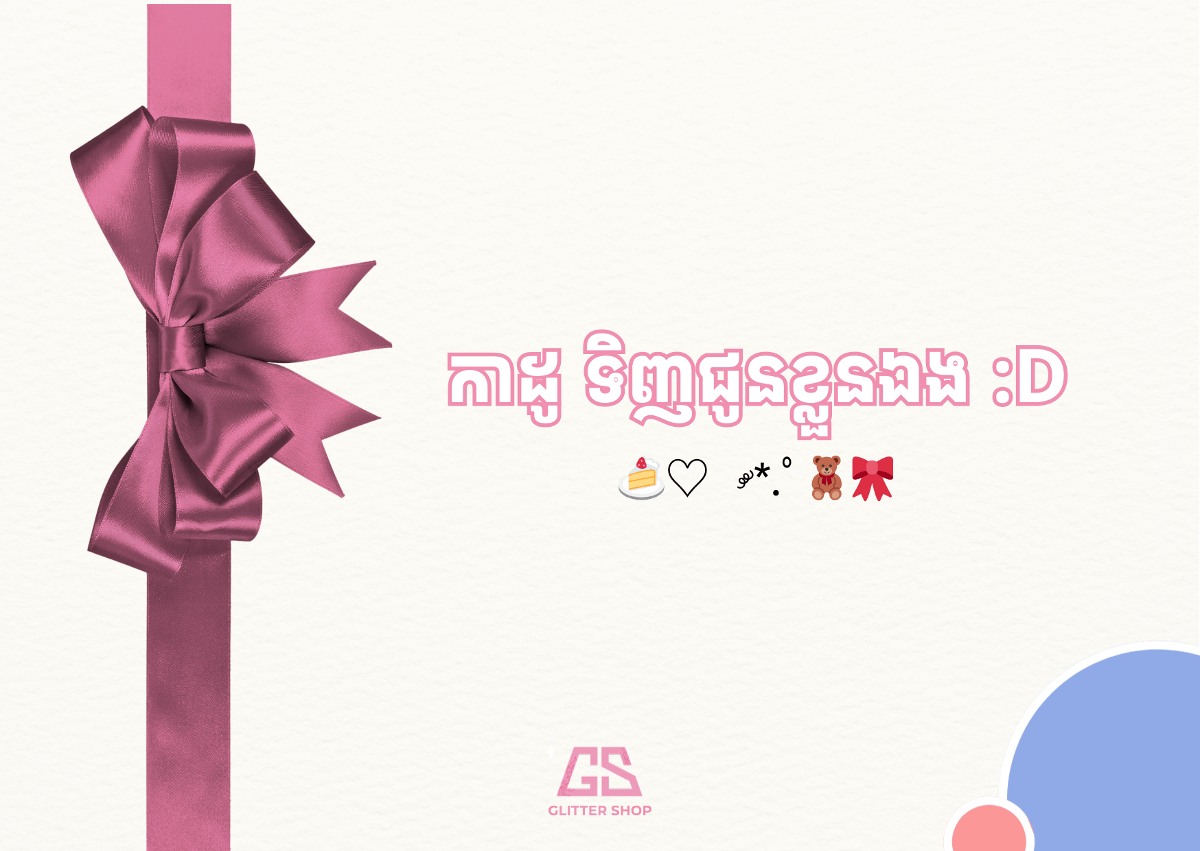 នៅ GLITTER SHOP, ពួកយើងតែងតែគិតគូរពីតម្រូវការ នឹងផ្តល់ភាពងាយស្រួលដល់បងៗ។ ពួកយើងផ្តល់ជូនកាតហ្វ្រី សម្រាប់បងៗដែលទិញអីវ៉ាន់សម្រាប់ធ្វើជាកាដូរ។ មិនតែប៉ុណ្នោះ ពួកយើងក៏មានទទួលខ្ចប់ជាកាដូរផងដែរ!